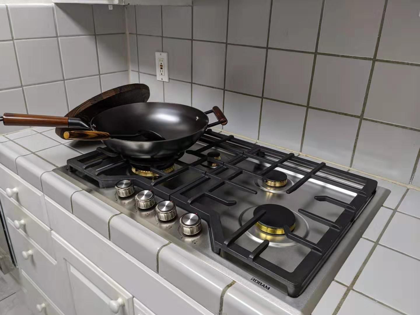 The ROBAM G-Series High Performance Cooktop unites power and design to deliver a superior cooking experience. Enjoy professional quality, durability, and performance in the comfort of your own home. The 20,000 BTU wok burner is perfect for all types of cooking styles including piping hot stir-fries. The thoughtful design includes advanced safety features, continuous cast iron grates, and stainless steel panels.