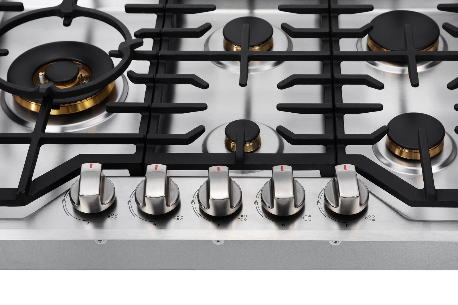 - Durability & Design: Built with 304 stainless steel and Italian-engineered brass burners resistant to warping, corrosion, and high-temperature. Features edge-to-edge cast iron grates for seamless pot movement, reinforced wok supports, and crack-resistant panels to withstand heavy daily use.