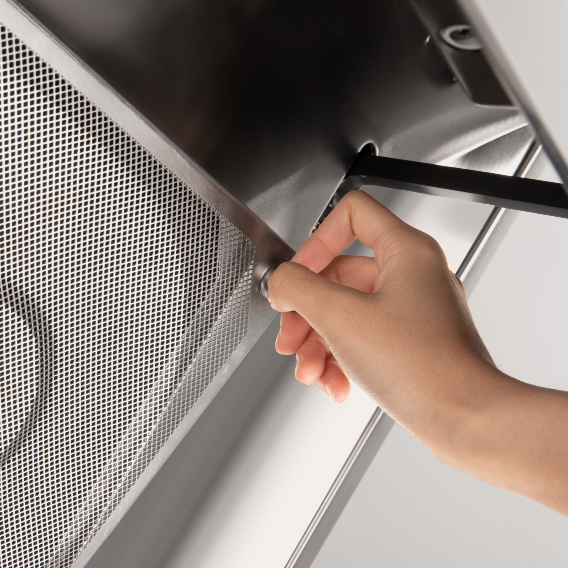 A678S 配备了磁吸式油网(滤网),可通过内置磁铁牢固吸附在机罩上。该设计让您无需任何工具即可在几秒内拆卸并重新安装滤网,使清洁和维护相比传统螺丝固定式滤网更加轻松便捷。