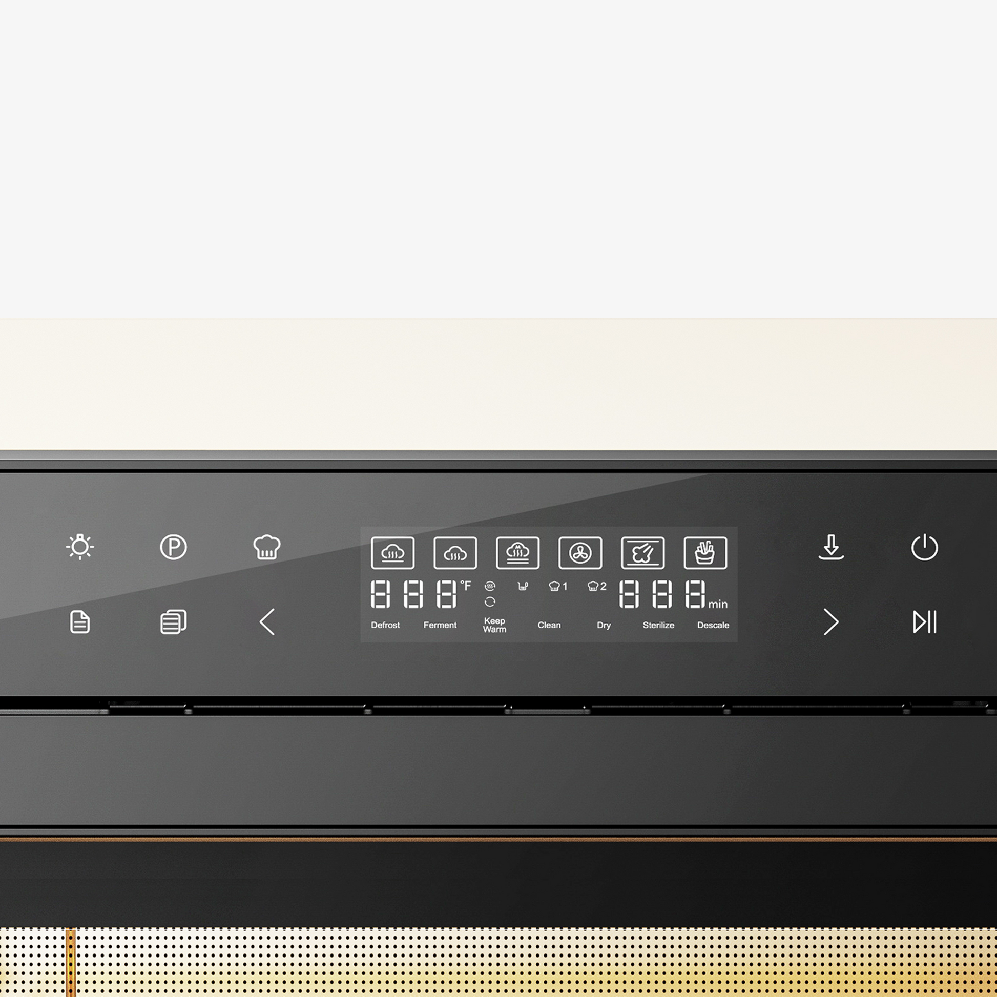 採用底部加熱板設計,這款檯面式蒸氣烤箱模擬爐台煮沸原理,自下而上產生強勁且包覆性的蒸汽。作為適合家用的進階蒸烤一體機,它可提供穩定且充足的蒸汽,全面包覆食材,實現均勻烹調。最終讓食物保留天然水分、新鮮度與原始風味,非常適合現代家庭的蒸烤一體機配置。