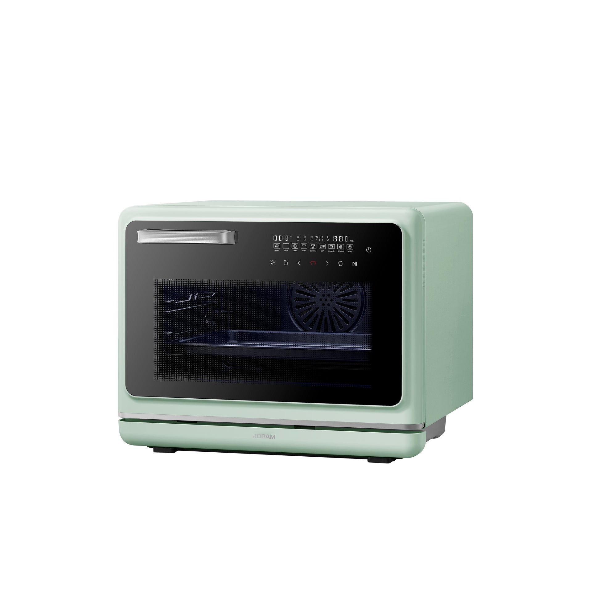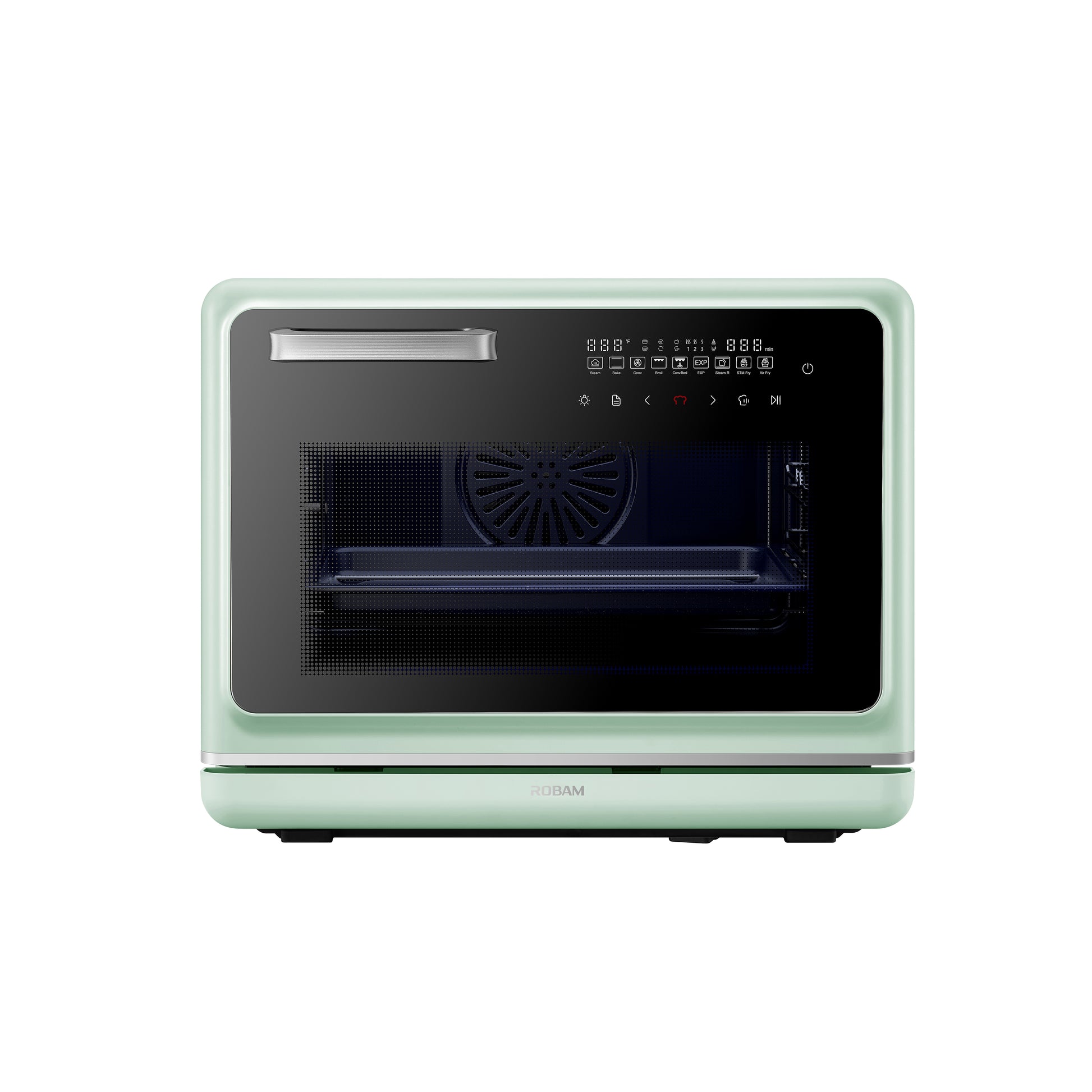 Powered by a 1800W heating system with upper, bottom, and rear heaters, this tabletop convection oven ensures fast preheating and even heat distribution. Air fry and steam fry modes deliver crispy, oil-free results, while the professional bake mode supports independent upper and lower temperature control (±36°F adjustment range), making it a reliable table top oven for baking, including use as a table top bread oven and table top cake oven.
