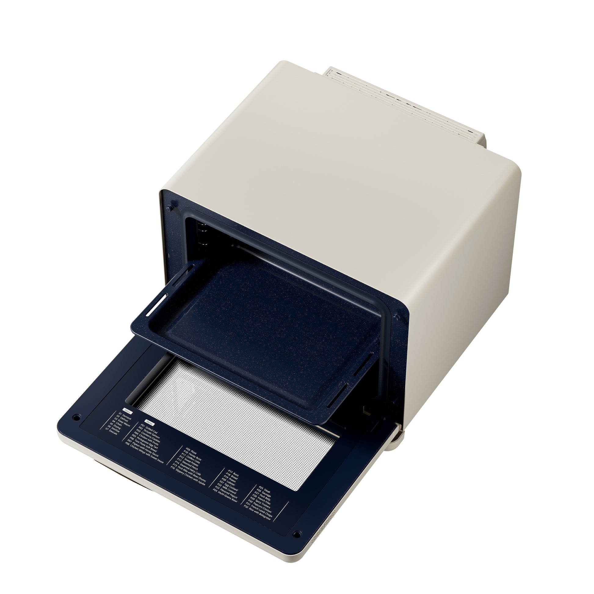 Cook confidently with 32 built-in recipes covering global flavors, from grilled cod and steamed crab to French fries and baked desserts. The intuitive LED control panel with one-touch operation, cooking memory, and water shortage reminders makes it easy to use as a table top toaster oven, tabletop toaster oven, or tabletop baking oven. A 3-layer shelf system and included accessories—baking tray, grill rack, and anti-scald gloves—enhance everyday versatility.